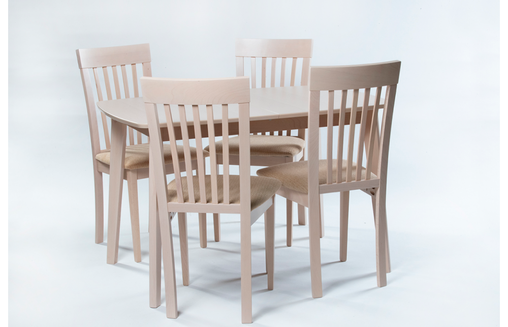 Сиденье обтянуто бежевой тканью, набивка из пеноматериала.